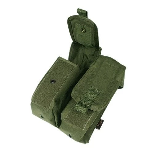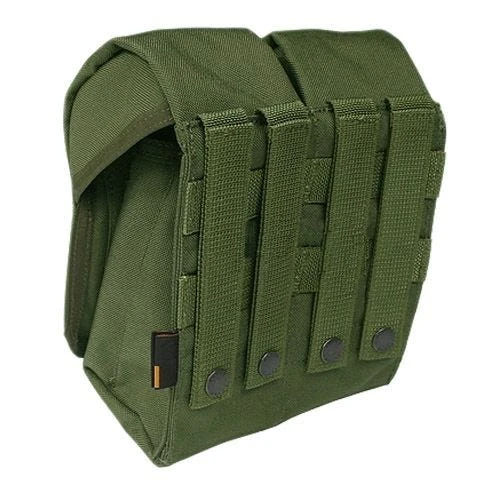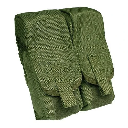 This durable double magazine pouch can hold 6 AK magazines. It features