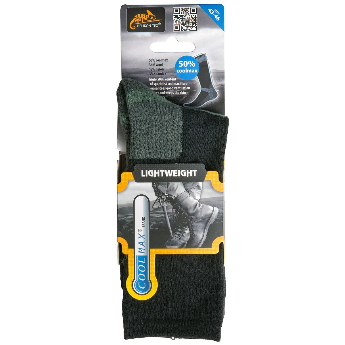 - Fibre content: 50% Coolmax, 34% wool, 13% nylon, 3% Spandex