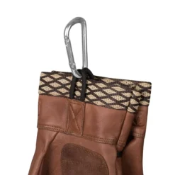 These well designed and made of cowhide leather gloves with webbing on the end offer a proper fit and the carabiner with cord loop allows attaching the gloves to the belt of backpack.