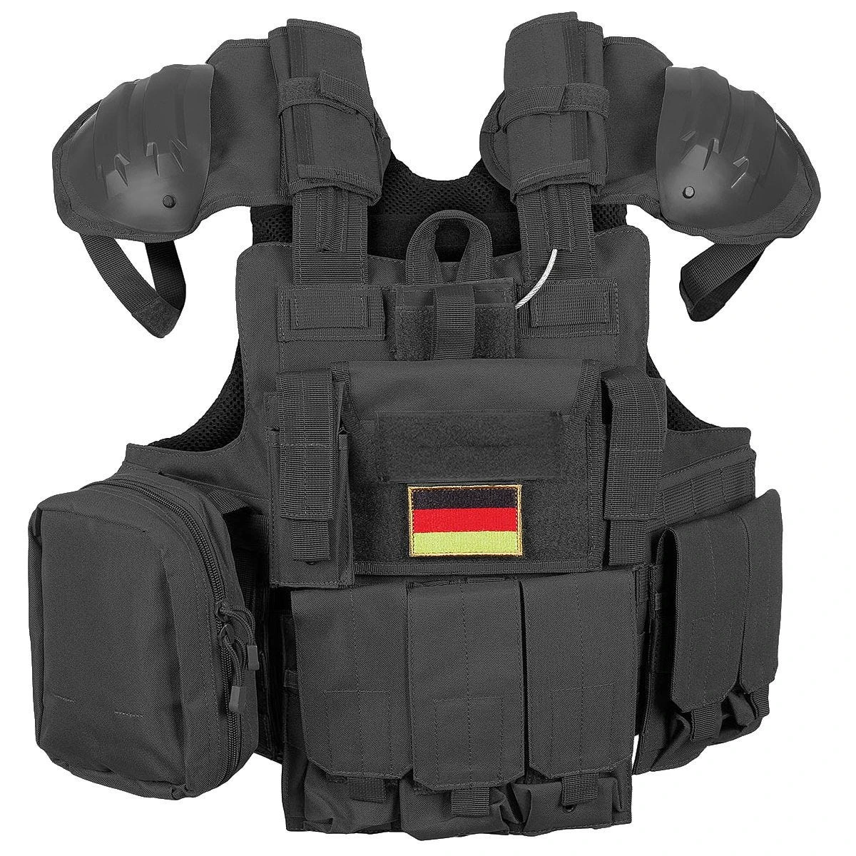 The Combat Vest from MFH is a robust and highly customizable tactical vest with several pockets and pouches of different sizes. The vest is highly customizable as it takes advantage of the MOLLE system that allows for the addition, removal and swapping of the various pouches on the vest. With the enormous amount of MOLLE loops on the vest, the desired configuration can be easily achieved. The vest is notably equipped with a quick-release system that allows rapid removal from the wearer. The vest features detachable and adjustable shoulder pads with a polyethylene shell. The vest comes ready with several pouches, two single ammo pouches, one double ammo pouch and one triple pouch with hook-and-loop flap closures. One large utility pouch with a two-way zipper and glove-friendly pull strings as well as internal loops. It also comes with one radio pouch. The vest contains a hook-and-loop compartment on the front and back for protective plates (not included). The vest is one size fits most, and it has a hook-and-loop adjustable waistband.