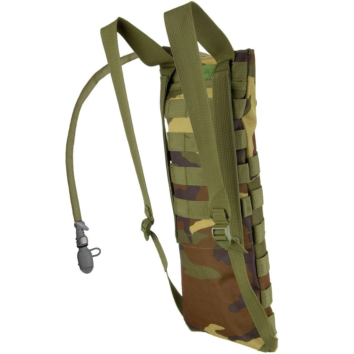 Presented hydration bladder is one of core components of MOLLE system, the one to replace the 1qt and 2qt canteens for on-the-go hydration, also equipped with PALS webbing for attaching extra pouches if needed. Its MOLLE construction allows creating modular connections with similar modular vests or rucksacks as a reservoir yet its adjustable in length shoulder straps enabling wear it as a normal backpack. This durable carrier is leak proof and taste free and comes complete with backrest with storage pocket, hydration system equipped with a convenient On/Off valve as well as hygienic interchangeable mouthpiece and cap.