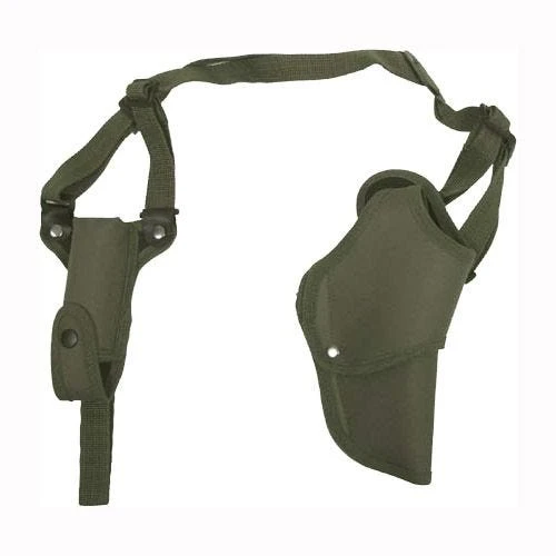 Quality and durable shoulder holster to carry average sized handgun.