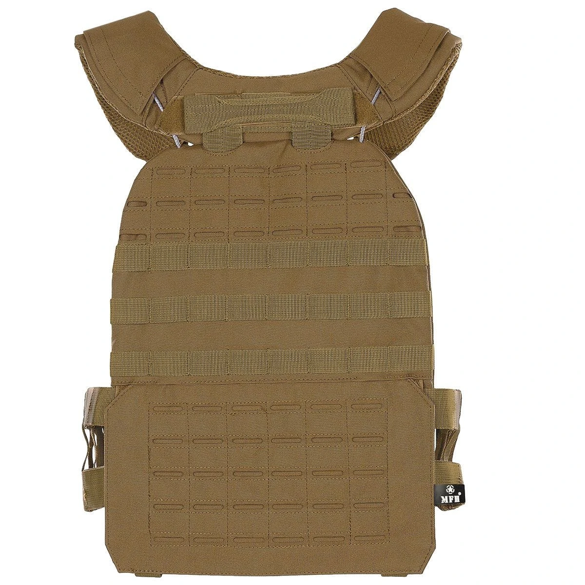 The Tactical Vest, “Laser MOLLE” from MFH, is the optimal solution to all modern load-carrying needs. This lightweight vest is chock-full of traditional MOLLE loops on the top front and back of the vest, as well as laser-cut MOLLE loops on the bottom front and back of the vest. It features a quick-release system that enables the user to unequip it rapidly. The padded shoulder, chest and back areas are sure to guarantee comfort during use. One size fits most, and it can be adjusted using the elastic straps on the sides. The vest also features an extendable rescue handle on the back.