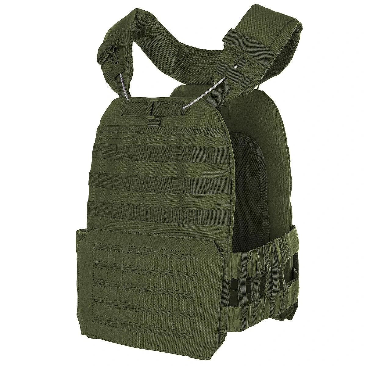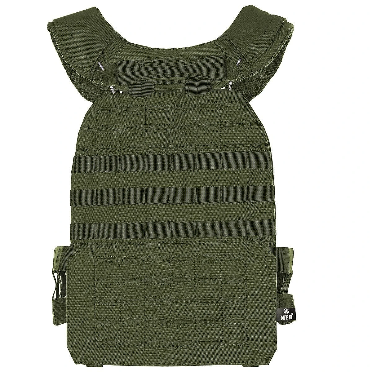 The Tactical Vest, “Laser MOLLE” from MFH, is the optimal solution to all modern load-carrying needs. This lightweight vest is chock-full of traditional MOLLE loops on the top front and back of the vest, as well as laser-cut MOLLE loops on the bottom front and back of the vest. It features a quick-release system that enables the user to unequip it rapidly. The padded shoulder, chest and back areas are sure to guarantee comfort during use. One size fits most, and it can be adjusted using the elastic straps on the sides. The vest also features an extendable rescue handle on the back.