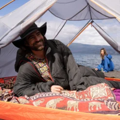Selk’bag Lite 6G Grey Fiery sleeping bag suit has a temperature rating suitable for use outdoors in the UK any time of year. The 6G Lite serves as the more lightweight alternative. With synthetic hollow fibre insulation and a water-resistant coating, it makes it the most versatile sleeping bag onesie outdoors enthusiasts can wear. The non-detachable hood is insulated and adjustable for the best fit, keeping you warm and comfortable. A quick, practical dual zipper design allows easy access to your pockets or fly. The kangaroo pocket allows you to bring your hands to rest and stash anything you need handily. Elastic hand openings help you to bring your hands in and out of the bag quickly and effortlessly. The removable zip-off booties allow you to wear your own shoes when you’re out and will keep you warm and comfortable when you’re sleeping. It’s recommended to size up as the Selk’bag Lite 6G Grey Fiery model is more of a snug fit as it contains thick padding insulation.