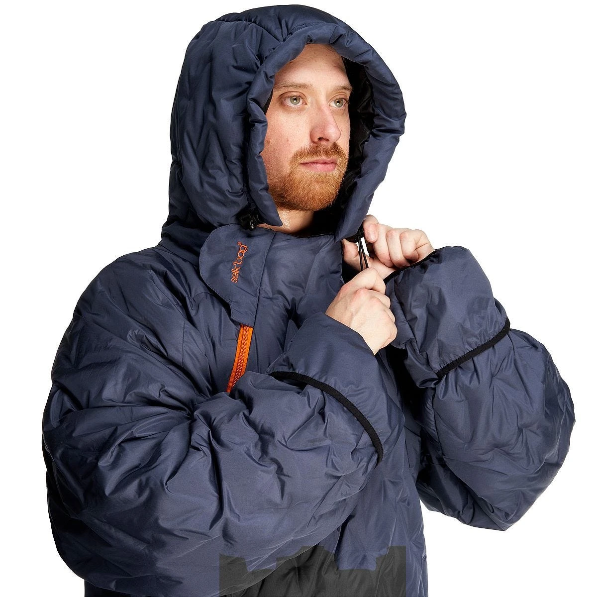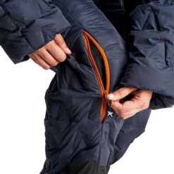 Selk’bag Nomad Blue sleeping bag suit has a temperature rating suitable for use outdoors in the UK any time of year. With 100% post-consumer recycled Primaloft insulation and a water-resistant coating, it makes it the most versatile sleeping bag onesie outdoors enthusiasts can wear. The non-detachable hood is insulated and adjustable for the best fit, keeping you warm and comfortable. The integrated face mask serves to keep your face warm and protected from the elements when you need it. A quick, practical dual zipper design allows easy access to your pockets or fly. The kangaroo pocket allows you to bring your hands to rest and stash anything you need handily. And the cargo pocket is perfect for stashing a phone or whatever needs to be handy. Elastic hand openings help you to bring your hands in and out of the bag quickly and effortlessly. Leg vents with a zipper closure that allow you to regulate temperature for times when you get too warm. The removable zip-off booties allow you to wear your own shoes when you’re out and will keep you warm and comfortable when you’re sleeping. It’s recommended to size up as the Selk’bag Nomad Blue model is more of a snug fit as it contains thick padding insulation.
