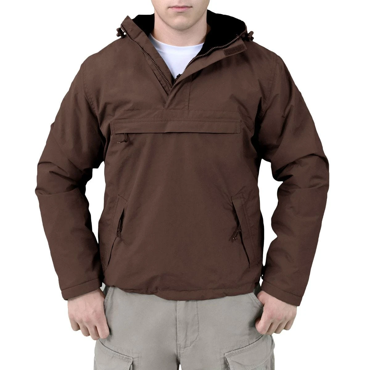 This durable anorak style rain jacket has an outer layer made of