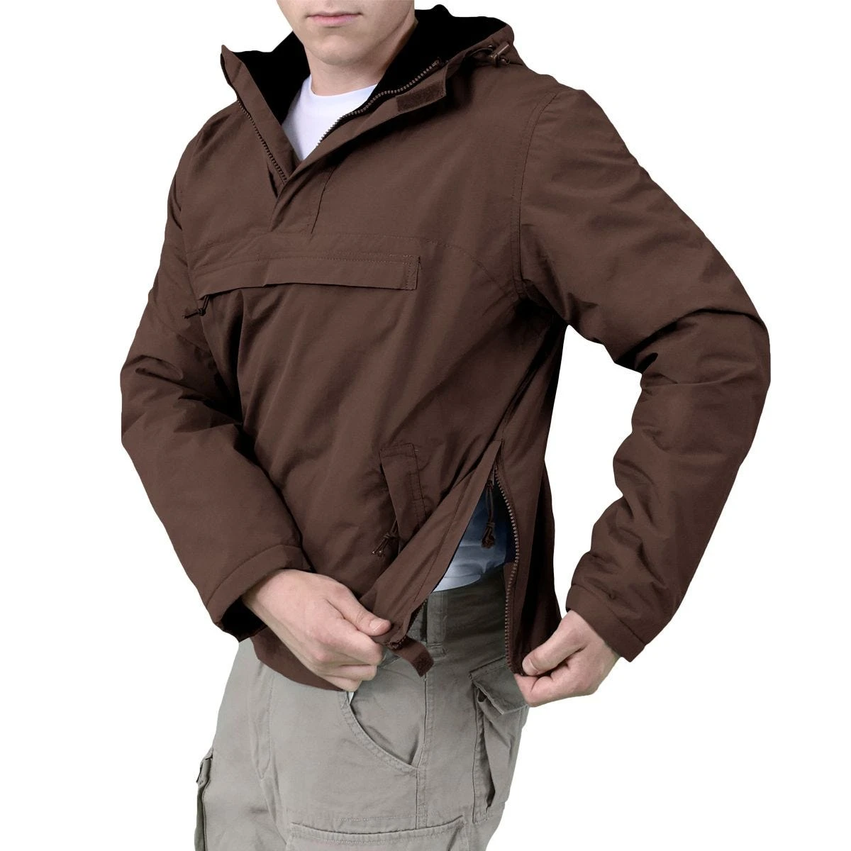 toggle adjustment in hood and waist, and side zippers for ease of