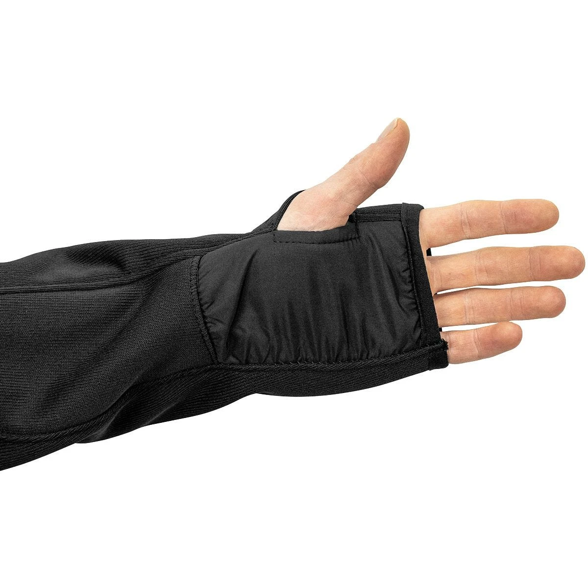 • Thumbholes on cuffs keep sleeves secure in place and help with temperature control